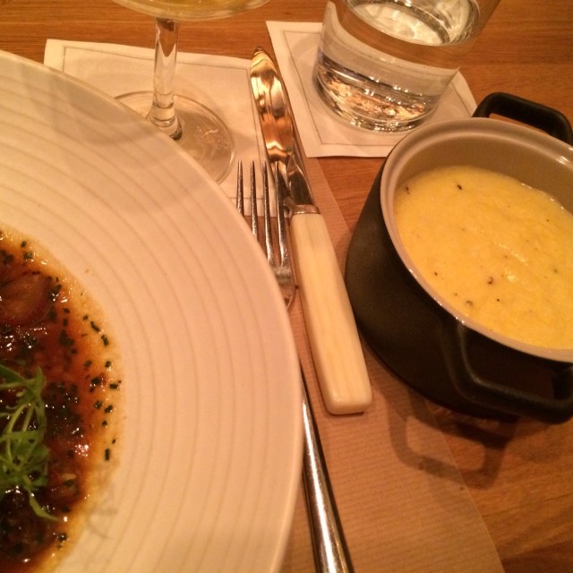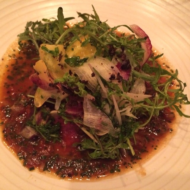 Unfortunately there are little things that can immediately turn me off to a restaurant. I sat at an uncrowded bar early in the evening and after a few minutes one of the bartenders provided me with a drink menu. Perhaps 10 minutes later an older gentleman sat beside me. Shortly thereafter the bartender, who had never asked me for my order even though I had now been waiting for quite a while, asked the gentleman what he was having. At this point the gentleman asked the bartender if he had already taken my order. While I think this violates some basic rules of hospitality, ladies first is just proper manners and a customer shouldn’t have had to point this out. This said, my dinner was quite good. The salad beautiful, the lamb neck perfectly cooked and lightened by the greens on the plate. While outstanding food can overcome poor service, I’m honesty not sure that I found the rest of the menu tempting enough to return anytime soon.